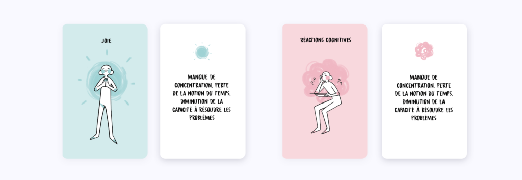 Notre jeu de cartes en ligne « Et toi, comment tu vas » s’adapte à différents lieux et à différents univers pour s’approcher au plus près de la réalité de chacun. Un jeu simple, facile d’utilisation avec des modes d’accès différents, selon les utilisateurs, les situations et les envies de chacun. Prenez le temps d’observer, comprendre et exprimer votre état émotionnel, seul ou en groupe!